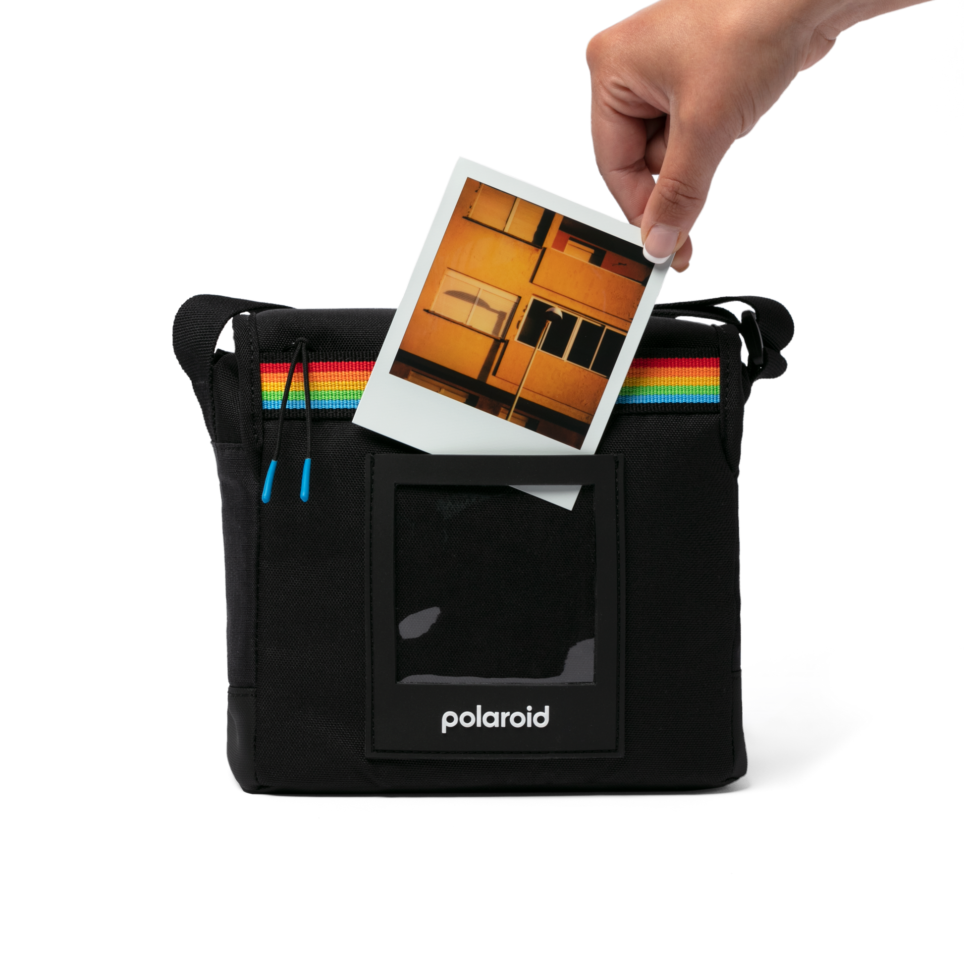 Throw on the Polaroid box camera bag and see where life’s adventures take you. This bag includes an insulated pocket for developing and storing your film (or snack) in optimal cool conditions. With a clip closure and protective base your camera will stay safe and secure. Add the finishing touches with your own Polaroid picture in the display holder and off you go.